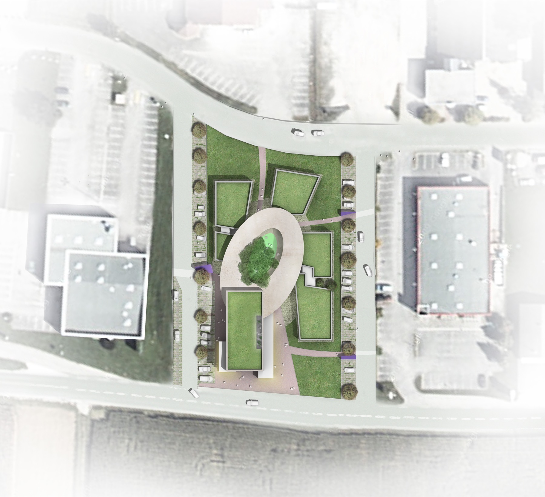 Ce projet à la programmation fragmentée devient une seule et même entité grâce à une coursive centrale qui assure le lien d’usage tout en faisant office de signal. On profite alors autour de l’ensemble des bâtiments, d’un véritable parc paysager contrastant avec la pureté architecturale des entités médicales.